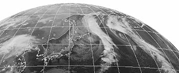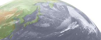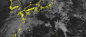 ・2026.1.10 23:50更新 1 ・8時20分の南東方向の空。弱い前兆ですが、東西の雲が出ていました。 2・22時全球画像。昨日の台湾の雲が北に移動し、さらに直線的になっていました。 21:30〜21:35までの5分間目視は、0.07〜0.09μSv/hでした。 |