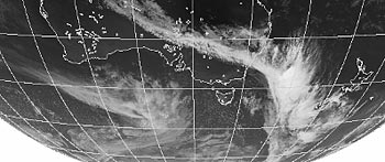 ・2025.11.29 24:10更新 1 ・16時の南の頭上。全般的に南に収束するような、丸まり雲。 2・8時全球画像(気象庁提供)。オーストラリアの東沖に、雲の吹き飛ばしが出ていました。 21:30〜21:35までの5分間目視は、0.07〜0.09μSv/hでした。 |