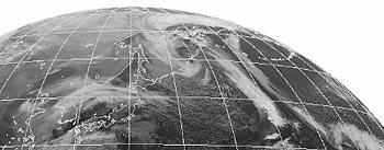 ・2025.11.3 24:10更新 1 ・18時全球画像。画像の右側のハワイ諸島の西沖を中心として、雲の円形状が出ています。 21:30〜21:35までの5分間目視は、0.07〜0.09μSv/hでした。 |