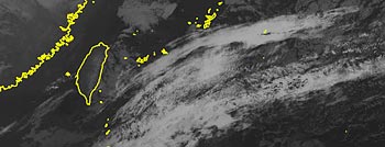 ・2025.11.14 23:10更新 ・11時可視画像。台湾の東半分にかかる雲が前兆形状を示しているように見えました。 21:30〜21:35までの5分間目視は、0.09〜0.10μSv/hと少し高めでした。 |