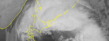 ・2025.12.12 24:10更新 ・13時30分全球画像(気象庁提供)。カムチャッカ半島の西側から南に伸びている雲の東側が、直線的な境界前兆雲に見えました。 21:30〜21:35までの5分間目視は、0.07〜0.08μSv/hでした。 |
