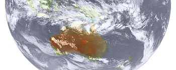 ・2026.1.8 24:10更新 1 ・17時20分の南方向の空。西方向のやや強いオレンジ焼けと共に、東西の帯雲が滞空していました。 2・22時全球画像。オーストラリアの東西に雲の吹き飛ばしが出ているようで目立ちました。 21:30〜21:35までの5分間目視は、0.07〜0.09μSv/hでした。 |