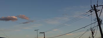 ・2025.12.3 24:00更新 ・16時10分の西方向の空。国府津ー松田断層上に、南北整列の吊し雲群が出ていました。東半球のプレートスレトスが高い状況です。 21:30〜21:35までの5分間目視は、0.07〜0.09μSv/hでした。 |